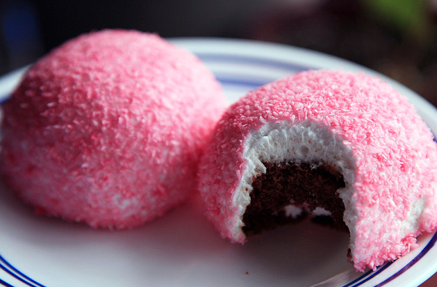 The Sno Ball, originally created by Hostess to give our WWII troops sweet, sweet happiness, is a chocolate cake hidden inside a fluff of marshmallow and sprinkled with tiny pink coconut shavings. In the 1950’s, some Wizard incorporated creme filling within the already immaculate Sno Ball, making everyone’s teeth just a little bit more tingly. Who doesn’t like more tingly?